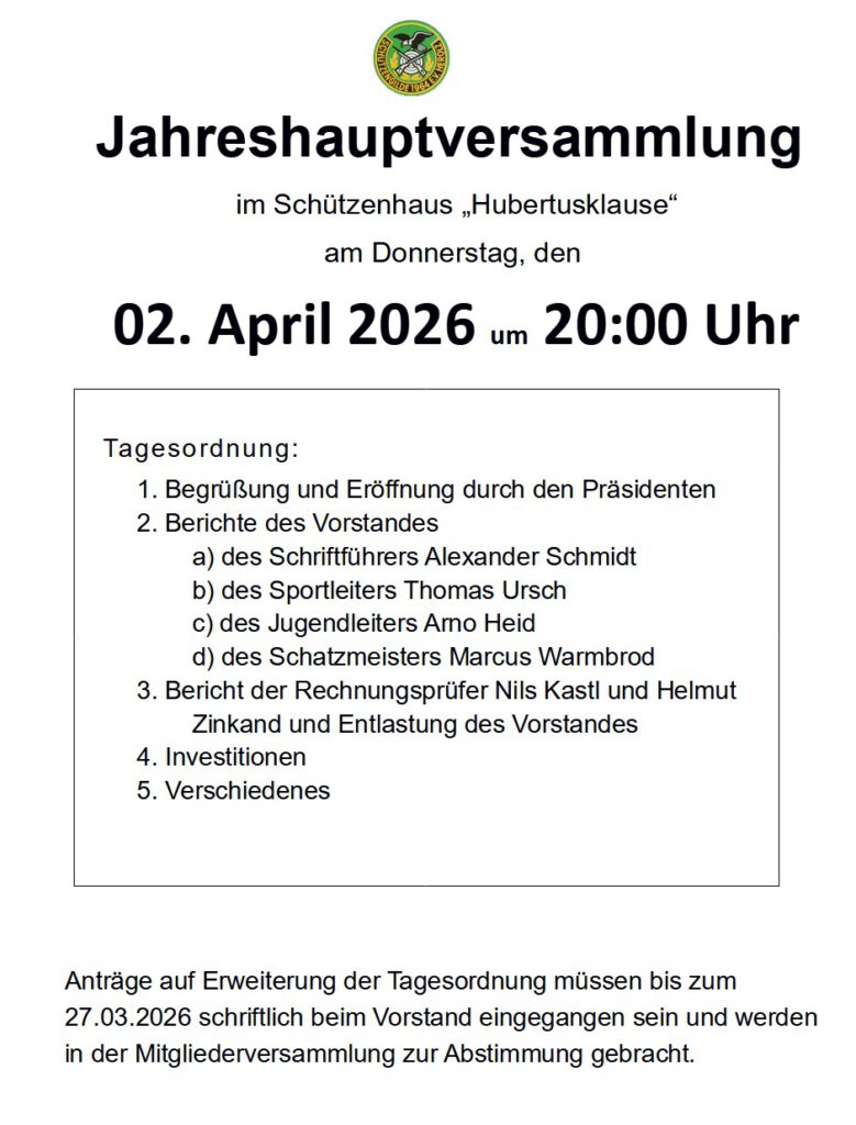 Öffnungs- und Trainingszeiten / Hubertusklause